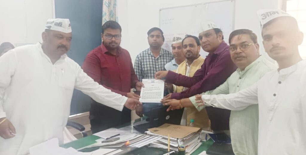 खाद की कालाबाजारी रोकने के लिए आम आदमी पार्टी द्वारा सौंपा गया ज्ञापन