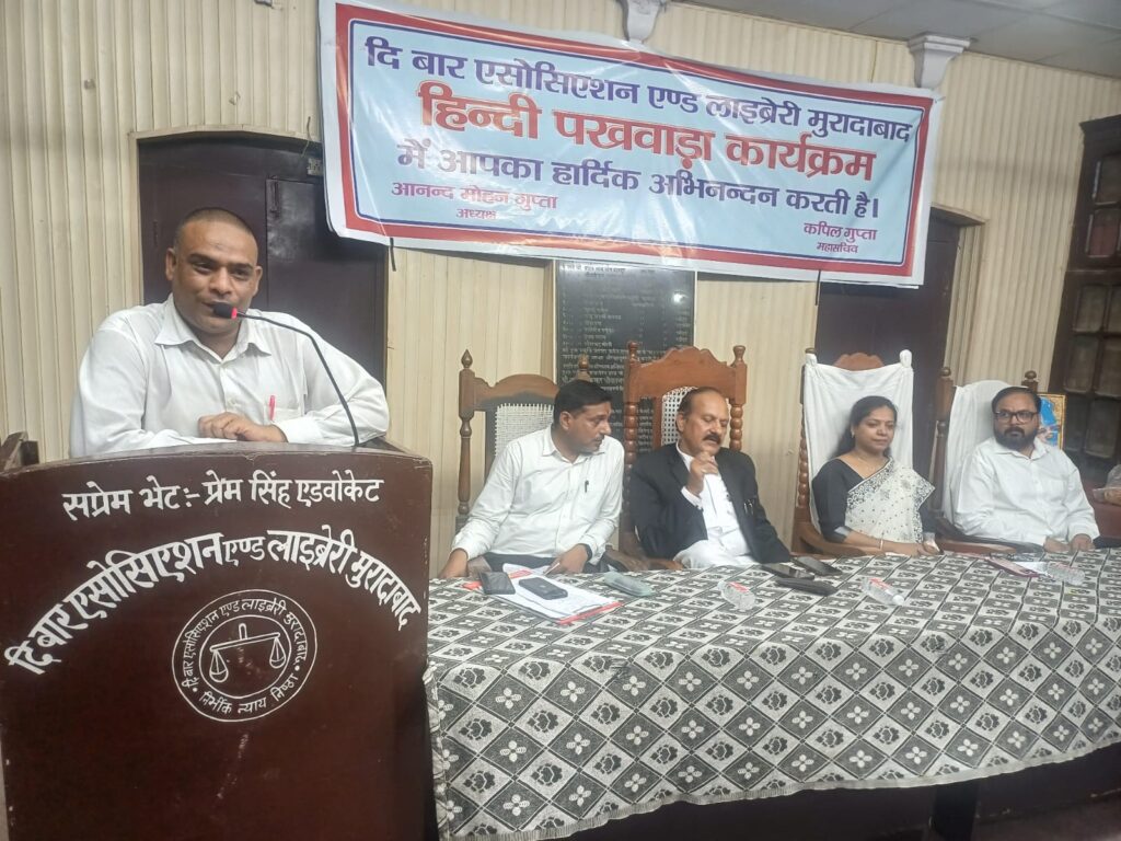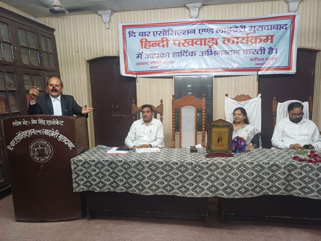 दि बार एसोसिएशन एण्ड लाइब्रेरी मुरादाबाद के सभागार में हिंदी पखवाड़ा कार्यक्रम के अंतर्गत राजभाषा हिंदी पर विचार गोष्ठी का आयोजन