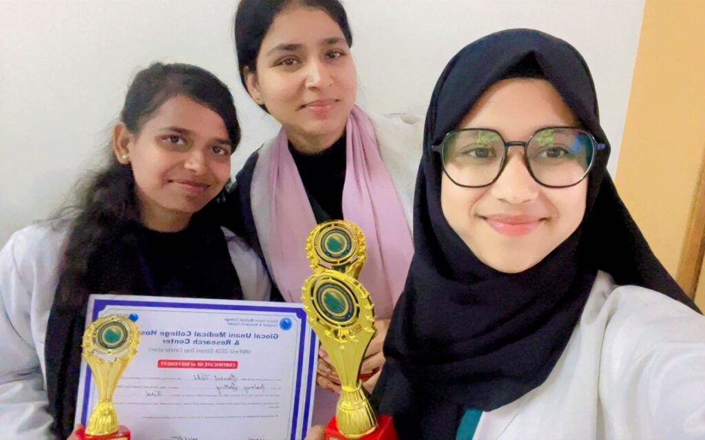 ग्लोकल यूनानी मेडिकल कॉलेज हॉस्पिटल एंड रिसर्च सेंटर मिर्ज़ापुर में यूनानी डे के मौके पर आयोजित प्रोग्राम “यूनिफेस्ट-2026” में “स्पॉटिंग एडविया मुफ़रिदत” टॉपिक पर हुए कॉम्पिटिशन में बीयूएमएस प्रथम प्रोफ.2024 की छात्रा एवं इंडियन फेडरेशन ऑफ वर्किंग जर्नलिस्ट के नेशनल कन्वीनर और यूपी वर्किंग जर्नलिस्ट यूनियन यूपी प्रेस क्लब के मंडल अध्यक्ष मोहम्मद जान तुर्की की बेटी शानज़ल तुर्की ने प्रतियोगिता में भाग ले रहे अन्य छात्रों को पीछे छोड़ते हुए प्रथम स्थान व एनाटॉमी स्पॉटिंग” टॉपिक पर हुए कॉम्पिटिशन में तीसरा स्थान भी पाया।