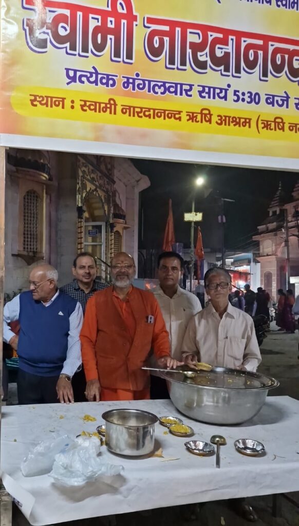 आज के मंगल चिंतन के उपरांत भंडारे का आयोजन किया गया. जिसमें प्रमुख रूप से डॉक्टर बृजपाल सिंह यादव सुरेंद्र सिंह पंकज शर्मा स्वामी नारदानन्द रसोई के संस्थापक बाबा संजीव आकांक्षी, सुमन गुप्ता, प्रमोद रस्तोगी, पंकज गुप्ता, मनोज गुप्ता, रुद्रांशी शर्मा, डॉली शर्मा, पंडित पुरुषोत्तम जी आदि का महत्वपूर्ण योगदान रहा.
